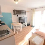 Eine komplette Küche bietet die Wasserkocher, die Kühlschränke und Küchenutensilien an. Das Apartment ist sehr nahe an der nächstgelegenen Bushaltestelle Mogilenska.